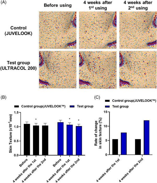 • Amélioration significative de la texture cutanée après la première et la seconde application