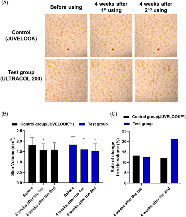 La texture cutanée et le volume des zones affaissées ont été évalués à l’aide de la technologie d’imagerie ANTERA 3D CS à trois moments : avant le traitement, 4 semaines après la première application et 4 semaines après la seconde application d’ULTRACOL200.